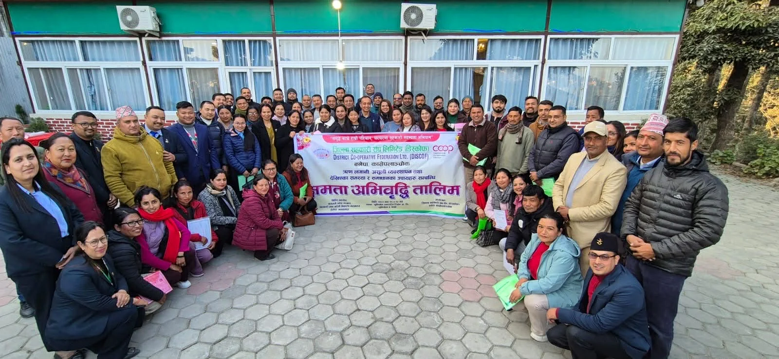 काभ्रे । जिल्ला सहकारी संघ लि. (डिस्कोफ) काभ्रेको आयोजना तथा बागमती प्रदेश सरकार, सहकारी तथा गरिबी निवारण मन्त्रालयको लागत साझेदारीमा सञ्चालन गरिएको “ऋण लगानी, असुली व्यवस्थापन तथा देखिएका समस्या र समाधानका उपायहरू सम्बन्धी २ दिने क्षमता अभिवृद्धि तालिम कार्यक्रम” सम्पन्न भएको छ ।