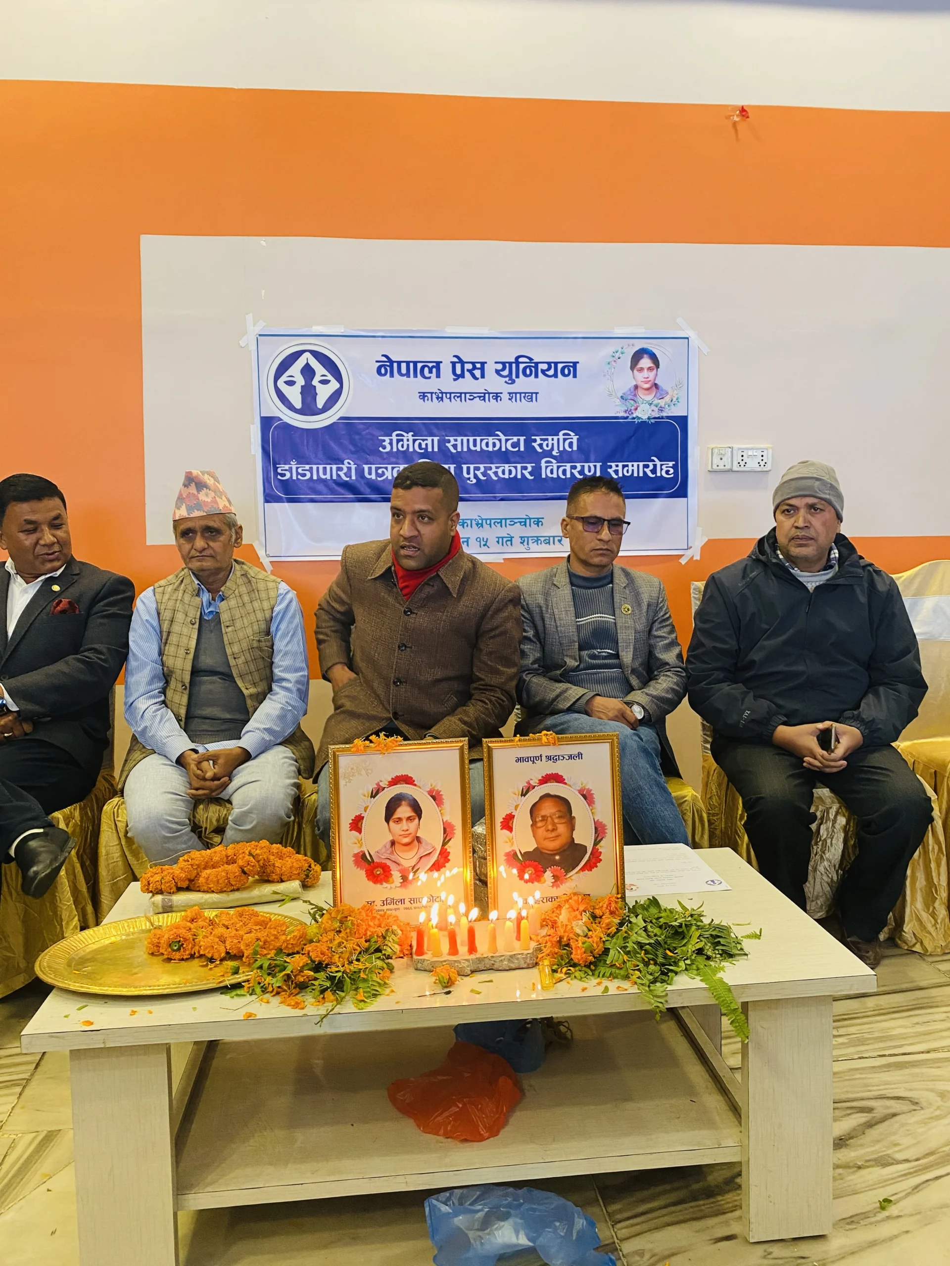 सम्मान कार्यक्रमकै बीच प्रेस युनियन काभ्रेका प्रदेश पार्षद स्वर्गीय हिरा काजी लामा र स्वर्गीय उर्मिला सापकोटाको सम्झनामा मौनधारण तथा दीप प्रज्वलनसहित श्रद्धाञ्जली प्रकट गरिएको थियो ।