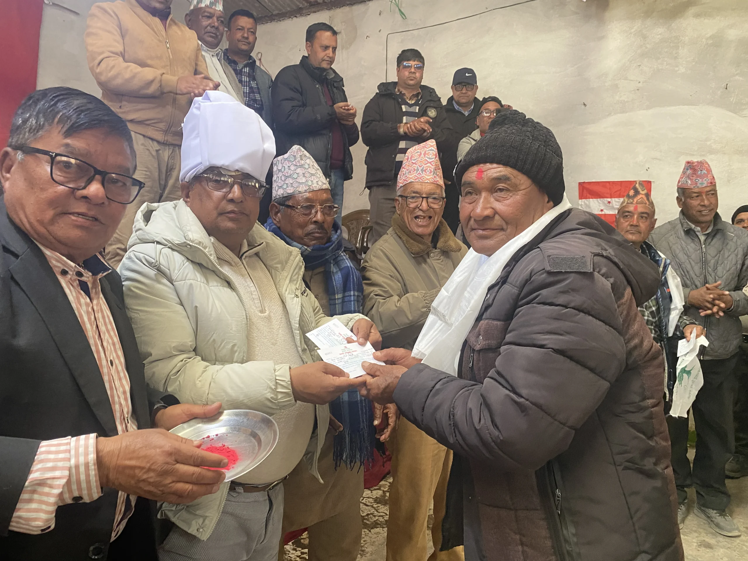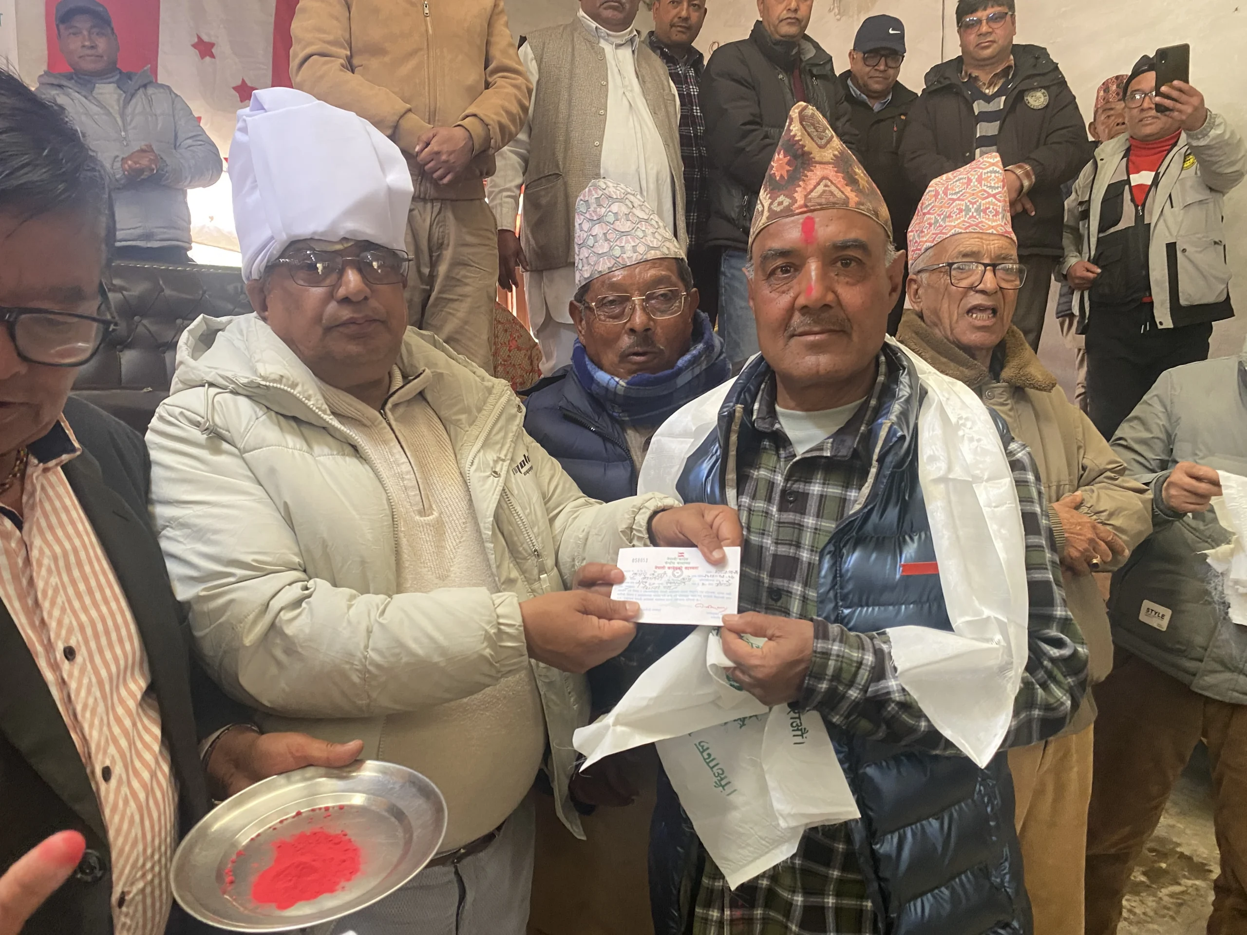 नेपाली कांग्रेसको चुनावी कार्यक्रममा बेथानचोक पुगेका काभ्रे क्षेत्र नम्बर २ का उम्मेदवार मधु आचार्यले टिका लगाएर उनीहरुलाई कांग्रेसमा स्वागत गरेका छन् । लामो समयदेखि नेकपा एमालेमा रहेर राजनीति गरिरहेका कुमार केसी र प्रेमबहादुर तामाङ गोलेकाे संयुक्त प्रयासमा ती युवाहरु सोमबार नेपाली कांग्रेसमा प्रवेश गरेका हुन् ।